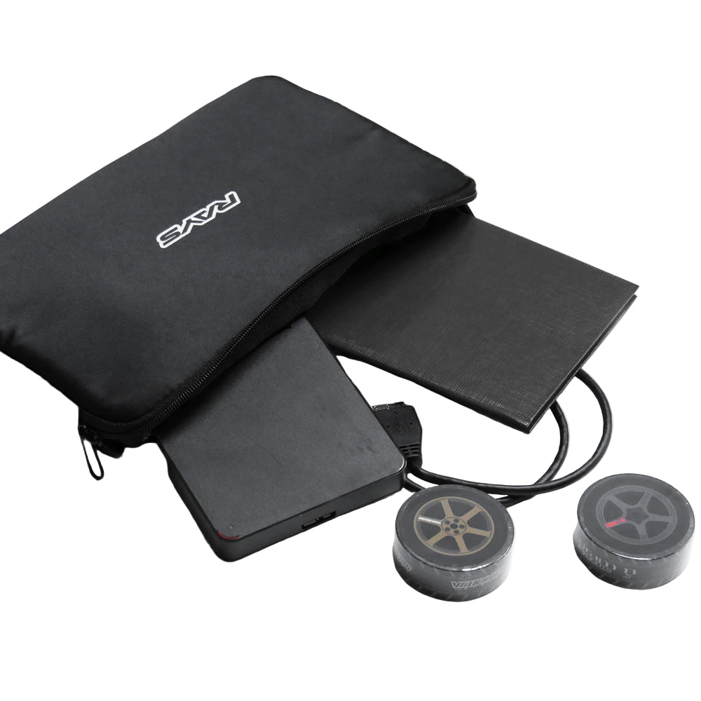 A convenient accessory that lets you store and transport small items with style. Featuring a bold "RAYS - The concept is racing" logo, this case is perfect for keeping your essential nuts, bolts, gauges, or chargers neatly organized. It's a great way to add a touch of motorsports flair to your gear.