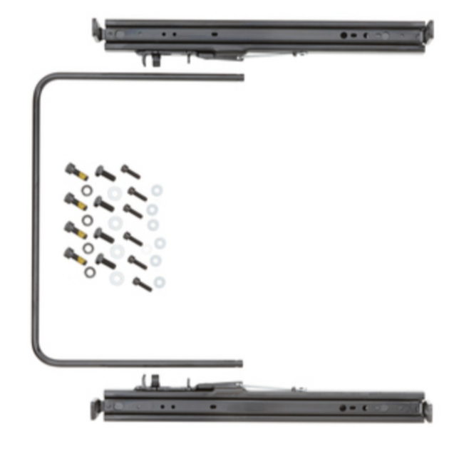 Double locking slider kit (per side) with an inside release lever/actuator and tabs.