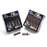 The R40 Iconix Lug Nuts feature a two-piece design with a free-spinning top for secure fastening and scratch prevention. Made from chromoly 435 forged steel, they are lightweight yet strong, ideal for street or track use. Open-ended for compatibility with standard and extended studs, each set includes 16 standard lugs and 4 locking nuts, combining versatility, security, and high performance.