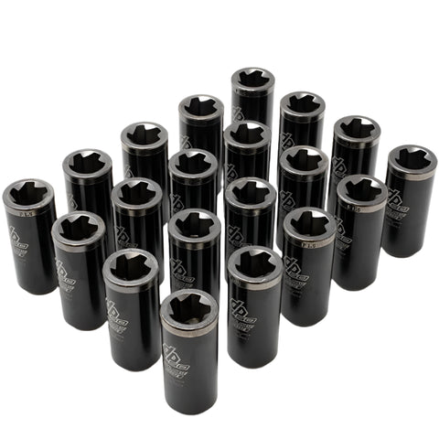 Experience superior wheel fastening with Project Kics Dual Phase System (DP50) wheel nuts. These two-piece nuts combine the strength of Duralumin with the durability of Chromoly, featuring a unique round outer sleeve. The innovative design incorporates an aluminum (60° taper) sleeve cover and a forged chromoly (SCM435) core nut. This free-moving sleeve prevents bolt runout and acts as a washer, significantly reducing the risk of loosening. Available in red, blue, or black, and in M12 x 1.50 or M12 x 1.25 thread pitches, each 20-piece set includes a dedicated A-135 adapter and a 17/21HEX conversion adapter (A10 L60).