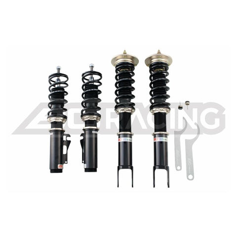 The BC Racing BR type coilover kit is our most popular suspension package. Equally at home on street and track the BR Series offers the best of both worlds with ride height and damping adjustability. Damping is adjusted simultaneously and height is adjusted independently of piston and spring stroke. Each BR Series system offers a minimum 2 inch drop* as well as 30 levels of damping adjustment. Assembled by hand in our facility, each application undergoes stringent quality control protocols to deliver the best possible suspension product to the consumer. Our most added value to our customers is the option to customize spring and damping rates to your specific needs. We will tailor the suspension to your individual preference. The BR Series is not meant as an entry level suspension setup but as a versatile setup that excels across a number of automotive disciplines.