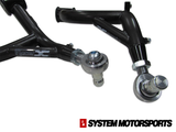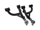 Constructed from 4130 chromoly steel for exceptional strength and durability, these control arms also deliver a significant 8-pound total weight reduction (4 pounds per arm) due to their tubular design—one of the most substantial weight savings achievable in suspension components. A black satin powder coat finish provides robust protection against corrosion and the elements.